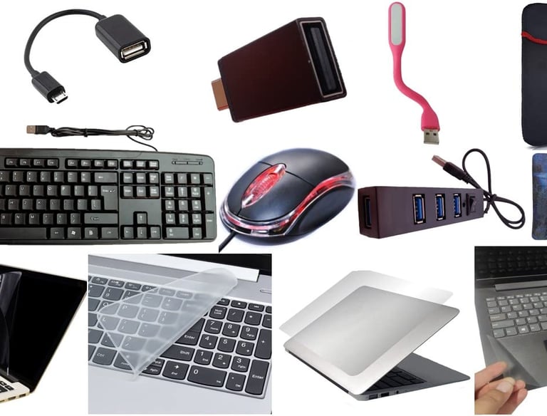 Sales and repairs of laptops, accessories, printers, networking materials, and IT support services.